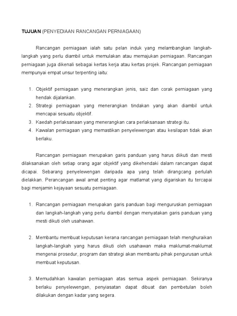 Tujuan Rancangan Perniagaan Pdf